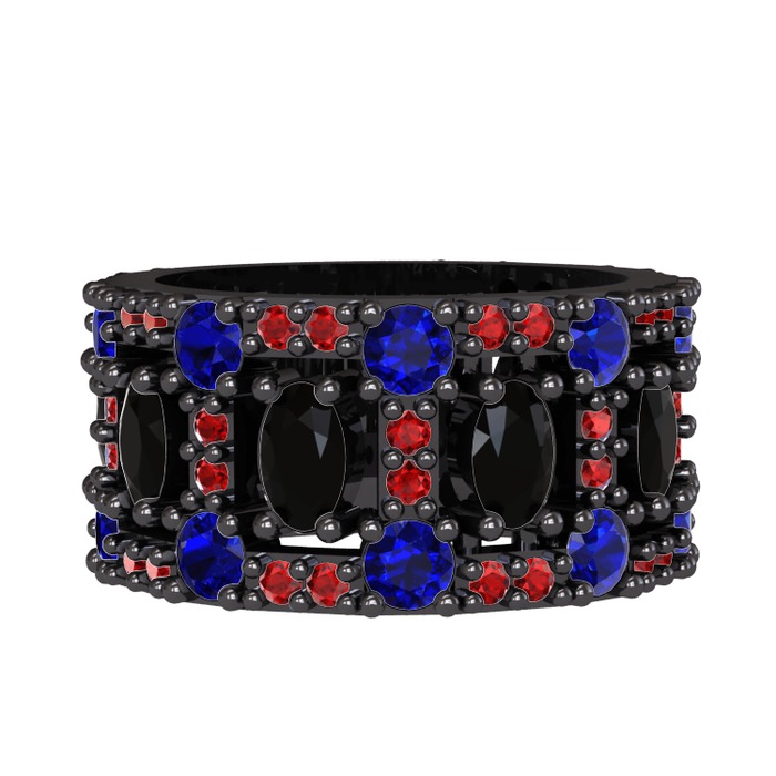 Siyah zirkon, lab safir ve garnet 925 ayar siyah rodyum kaplama gümüş yüzük