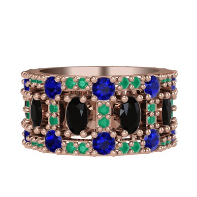 Siyah zirkon, lab safir ve kök zümrüt 8 ayar rose altın yüzük
