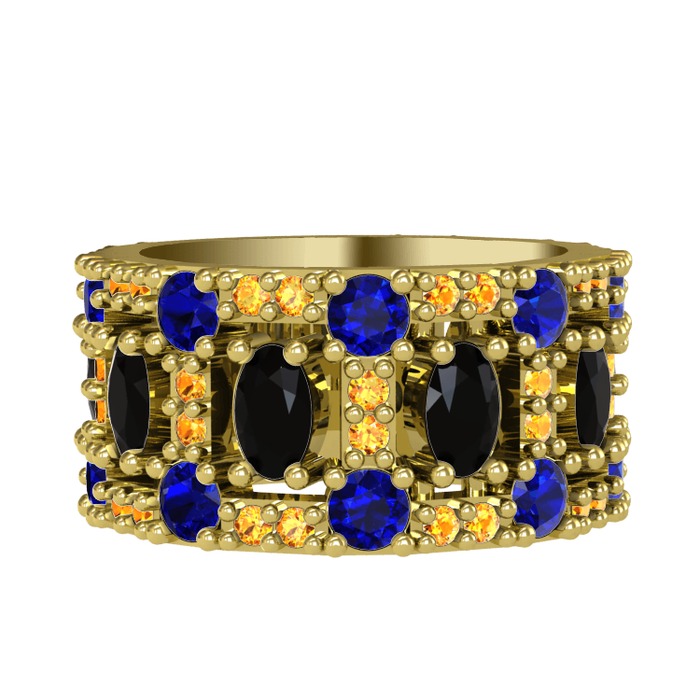 Siyah zirkon, lab safir ve sitrin 18 ayar altın yüzük