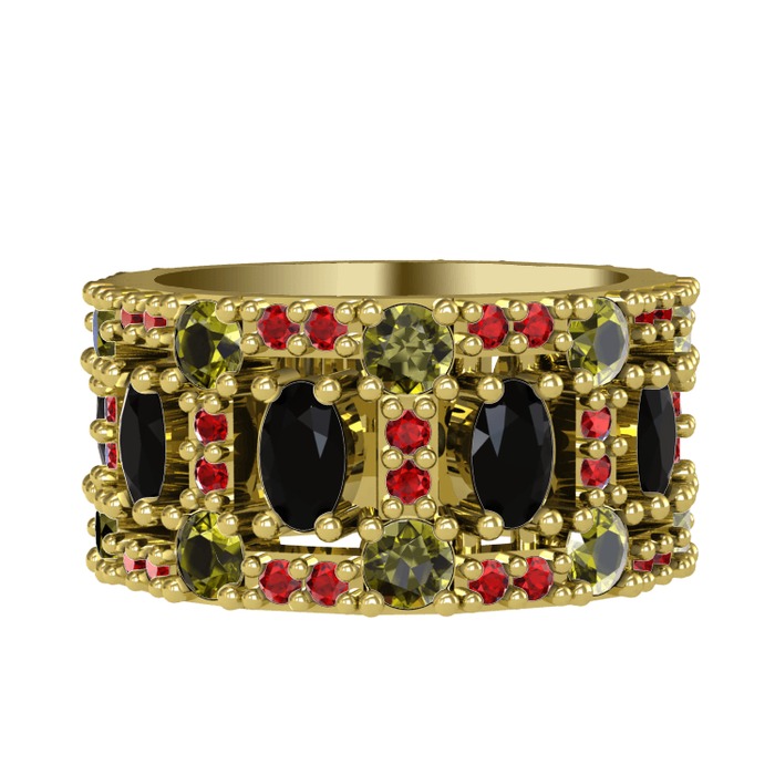 Siyah zirkon, peridot ve garnet 8 ayar altın yüzük