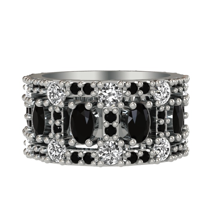 Siyah zirkon ve pırlanta 14 ayar beyaz altın yüzük (1.76 karat)