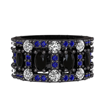 Siyah zirkon, pırlanta ve lab safir 925 ayar siyah rodyum kaplama gümüş yüzük (1.76 karat)