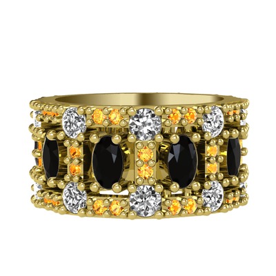 Siyah zirkon, pırlanta ve sitrin 925 ayar altın kaplama gümüş yüzük (1.76 karat)