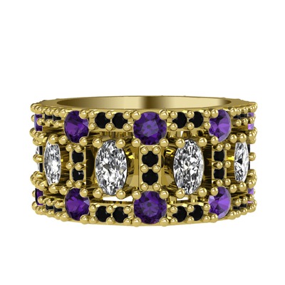 Swarovski, ametist ve siyah zirkon 18 ayar altın yüzük