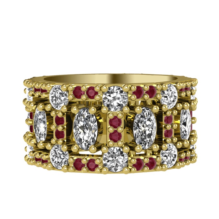 Swarovski, beyaz zirkon ve kök yakut 14 ayar altın yüzük