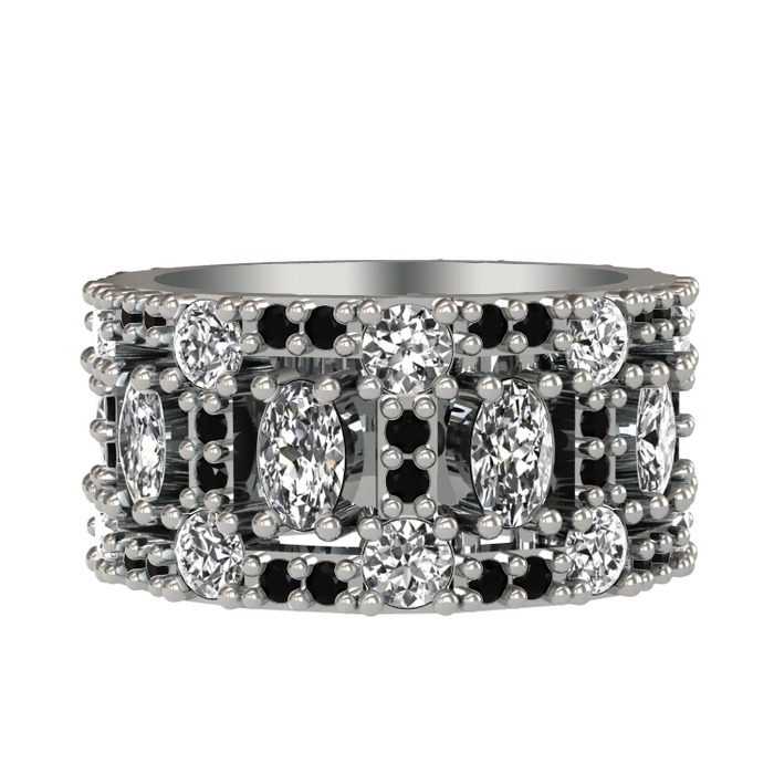 Swarovski, beyaz zirkon ve siyah zirkon 14 ayar beyaz altın yüzük