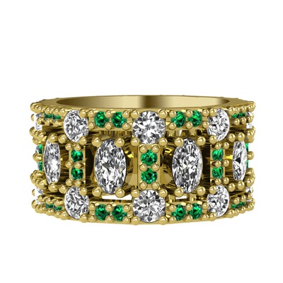 Swarovski, beyaz zirkon ve yeşil kuvars 18 ayar altın yüzük