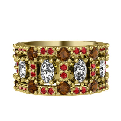 Swarovski, dumanlı kuvars ve garnet 14 ayar altın yüzük