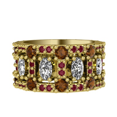 Swarovski, dumanlı kuvars ve kök yakut 8 ayar altın yüzük