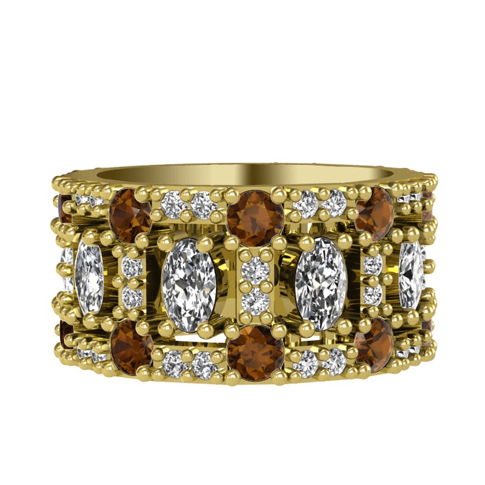 Swarovski, dumanlı kuvars ve pırlanta 8 ayar altın yüzük (0.66 karat)