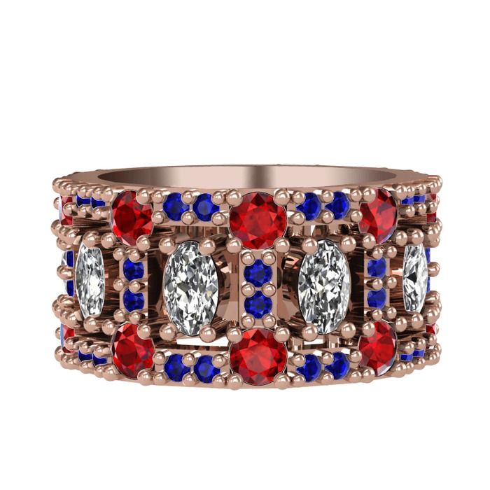 Swarovski, garnet ve lab safir 925 ayar rose altın kaplama gümüş yüzük