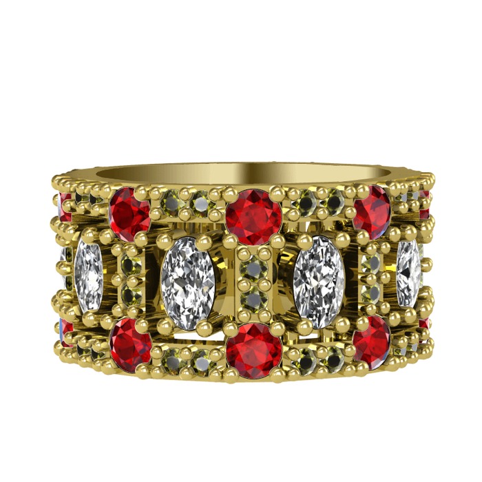 Swarovski, garnet ve peridot 8 ayar altın yüzük