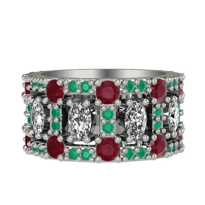 Swarovski, kök yakut ve kök zümrüt 925 ayar gümüş yüzük