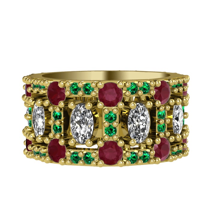 Swarovski, kök yakut ve yeşil kuvars 8 ayar altın yüzük