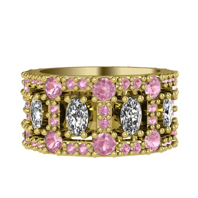 Swarovski ve pembe kuvars 925 ayar altın kaplama gümüş yüzük