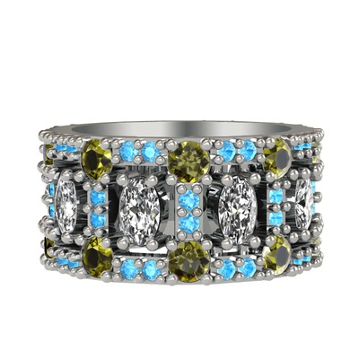 Swarovski, peridot ve akuamarin 18 ayar beyaz altın yüzük
