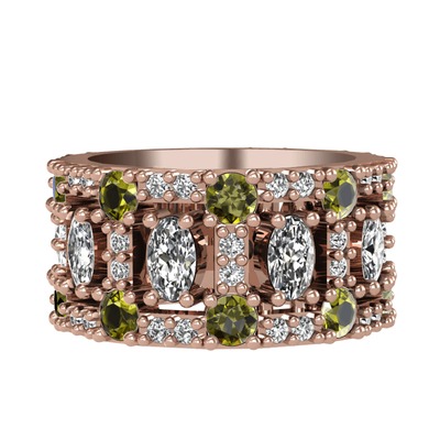 Swarovski ve peridot 925 ayar rose altın kaplama gümüş yüzük