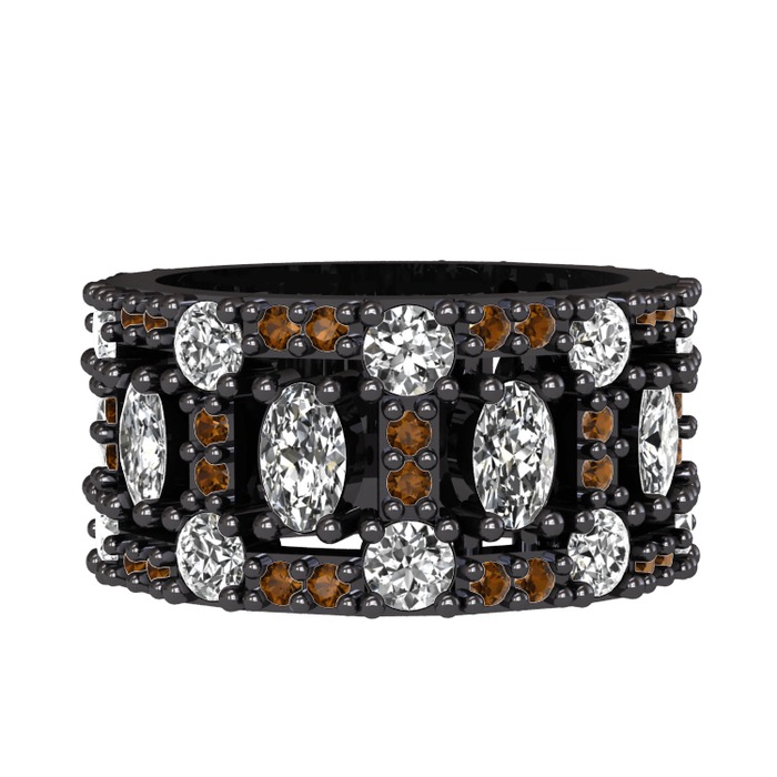 Swarovski, pırlanta ve dumanlı kuvars 925 ayar siyah rodyum kaplama gümüş yüzük (1.76 karat)