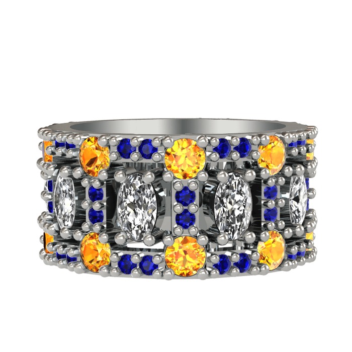 Swarovski, sitrin ve lab safir 18 ayar beyaz altın yüzük