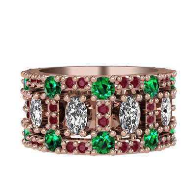 Swarovski, yeşil kuvars ve kök yakut 18 ayar rose altın yüzük