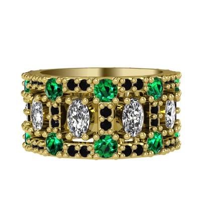 Swarovski, yeşil kuvars ve siyah zirkon 14 ayar altın yüzük