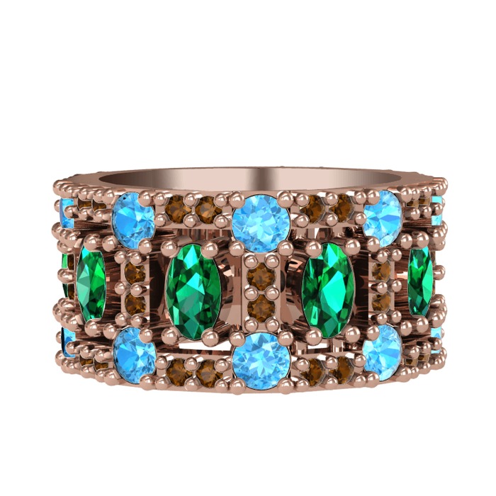Yeşil kuvars, akuamarin ve dumanlı kuvars 14 ayar rose altın yüzük
