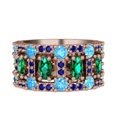 Yeşil kuvars, akuamarin ve lab safir 18 ayar rose altın yüzük
