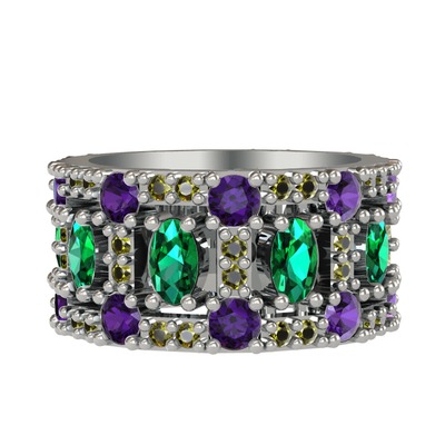 Yeşil kuvars, ametist ve peridot 18 ayar beyaz altın yüzük