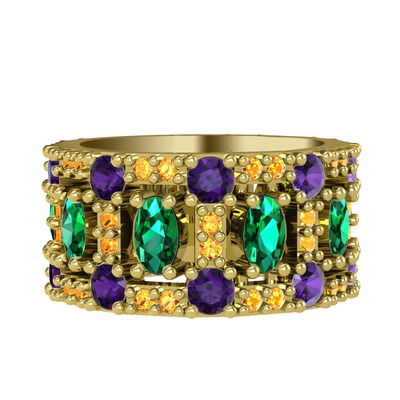Yeşil kuvars, ametist ve sitrin 18 ayar altın yüzük