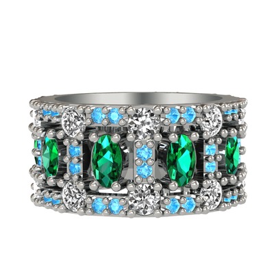 Yeşil kuvars, beyaz zirkon ve akuamarin 925 ayar gümüş yüzük