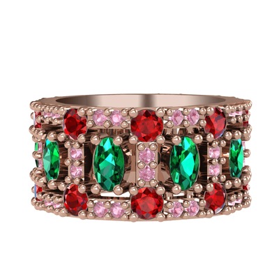 Yeşil kuvars, garnet ve pembe kuvars 14 ayar rose altın yüzük