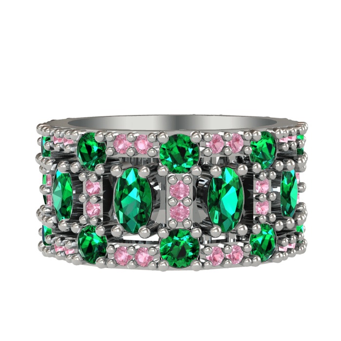 Yeşil kuvars ve pembe kuvars 8 ayar beyaz altın yüzük