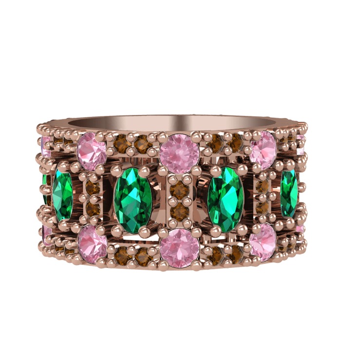 Yeşil kuvars, pembe kuvars ve dumanlı kuvars 8 ayar rose altın yüzük