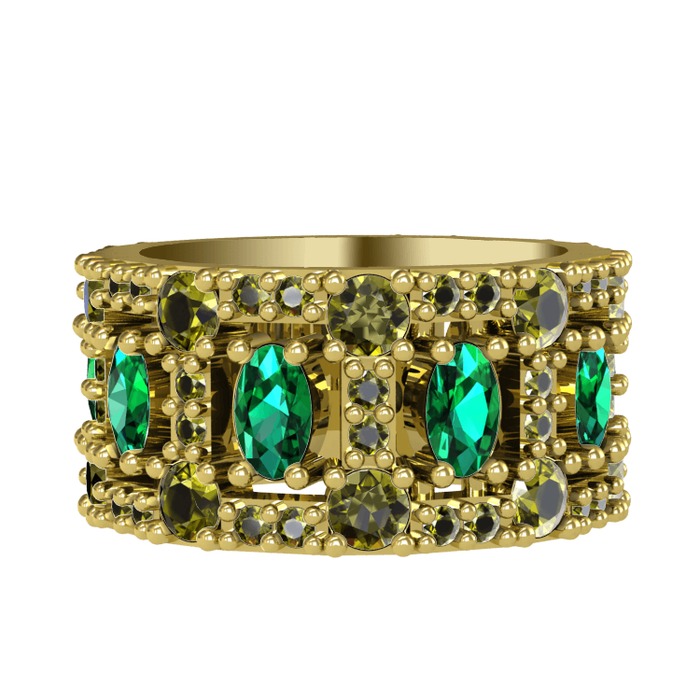 Yeşil kuvars ve peridot 925 ayar altın kaplama gümüş yüzük