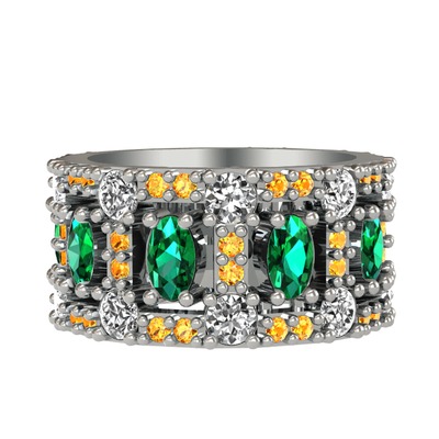 Yeşil kuvars, pırlanta ve sitrin 18 ayar beyaz altın yüzük (1.76 karat)
