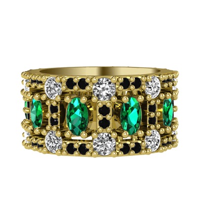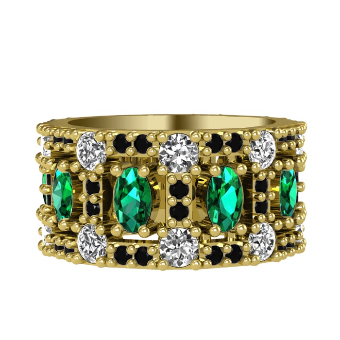 Yeşil kuvars, pırlanta ve siyah zirkon 14 ayar altın yüzük (1.76 karat)