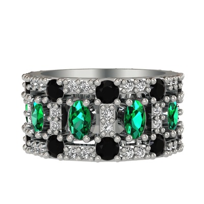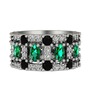 Yeşil kuvars, siyah zirkon ve beyaz zirkon 18 ayar beyaz altın yüzük