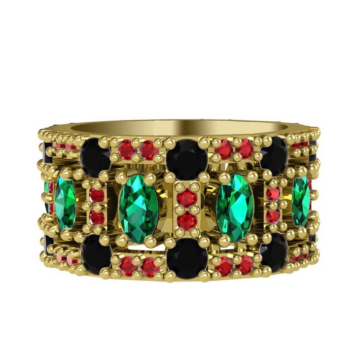 Yeşil kuvars, siyah zirkon ve garnet 14 ayar altın yüzük