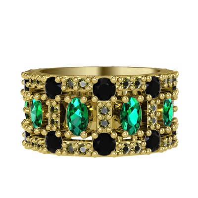 Yeşil kuvars, siyah zirkon ve peridot 925 ayar altın kaplama gümüş yüzük