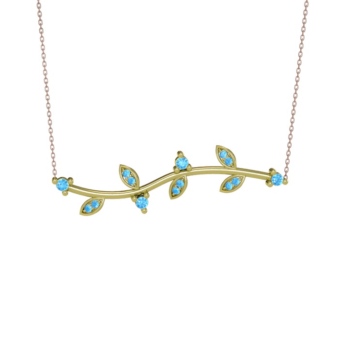 Akuamarin 14 ayar altın kolye (40 cm rose altın rolo zincir)