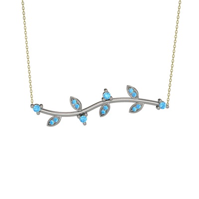 Akuamarin 18 ayar beyaz altın kolye (40 cm altın rolo zincir)