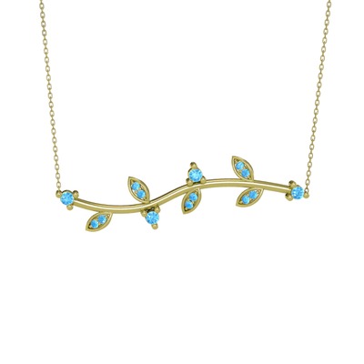 Akuamarin 8 ayar altın kolye (40 cm gümüş rolo zincir)