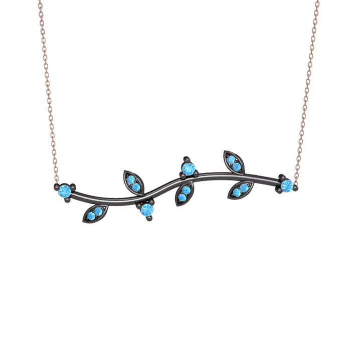 Akuamarin 925 ayar siyah rodyum kaplama gümüş kolye (40 cm rose altın rolo zincir)