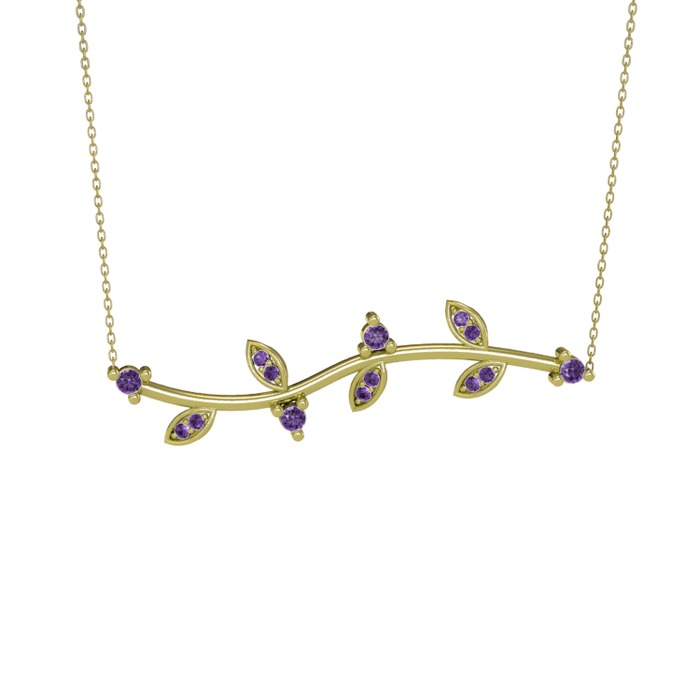 Ametist 14 ayar altın kolye (40 cm gümüş rolo zincir)