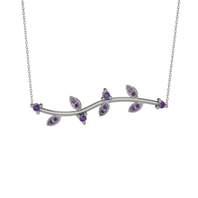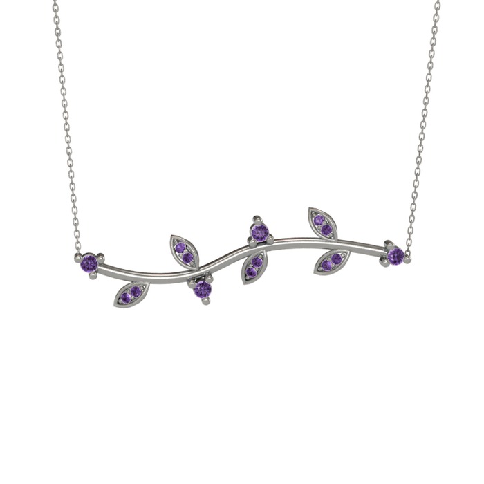 Ametist 14 ayar beyaz altın kolye (40 cm gümüş rolo zincir)