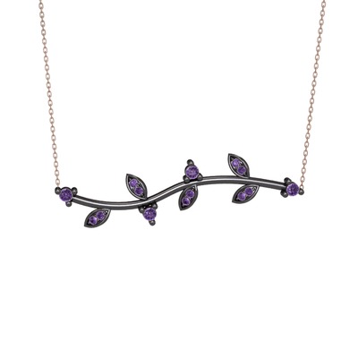 Ametist 925 ayar siyah rodyum kaplama gümüş kolye (40 cm gümüş rolo zincir)