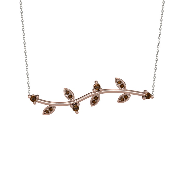 Zeytin Dalı Kolye - Dumanlı kuvars 14 ayar rose altın kolye (40 cm beyaz altın rolo zincir)