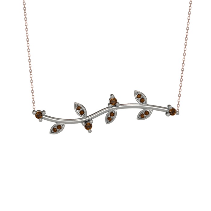 Dumanlı kuvars 925 ayar gümüş kolye (40 cm rose altın rolo zincir)