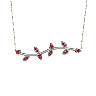 Garnet 14 ayar beyaz altın kolye (40 cm rose altın rolo zincir)