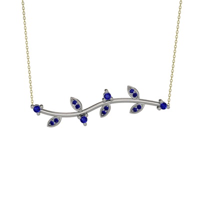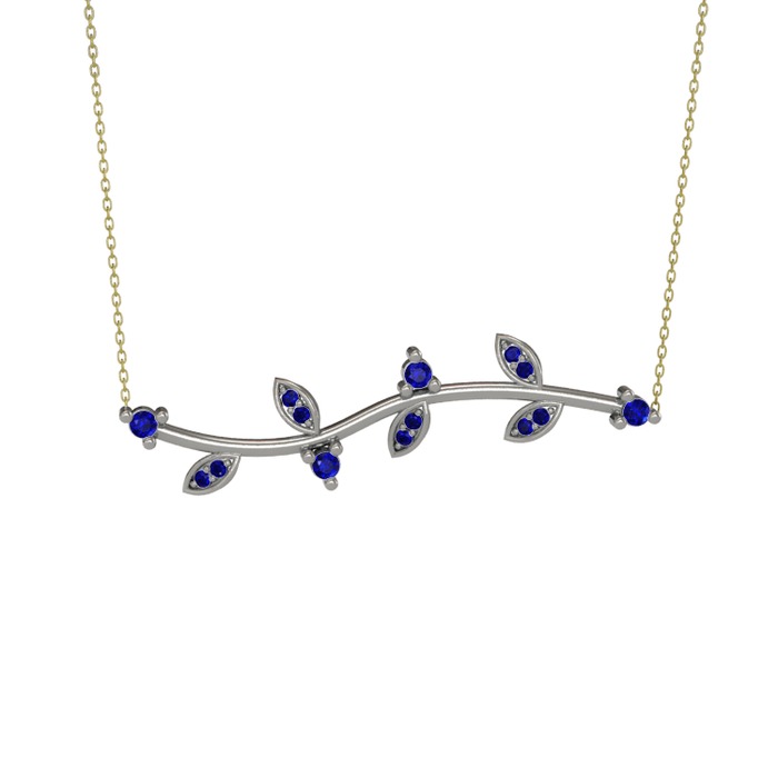 Lab safir 14 ayar beyaz altın kolye (40 cm altın rolo zincir)